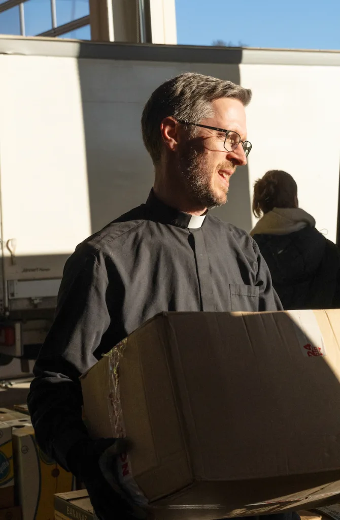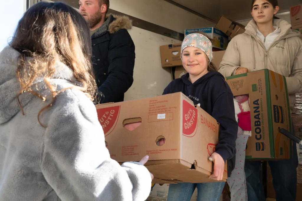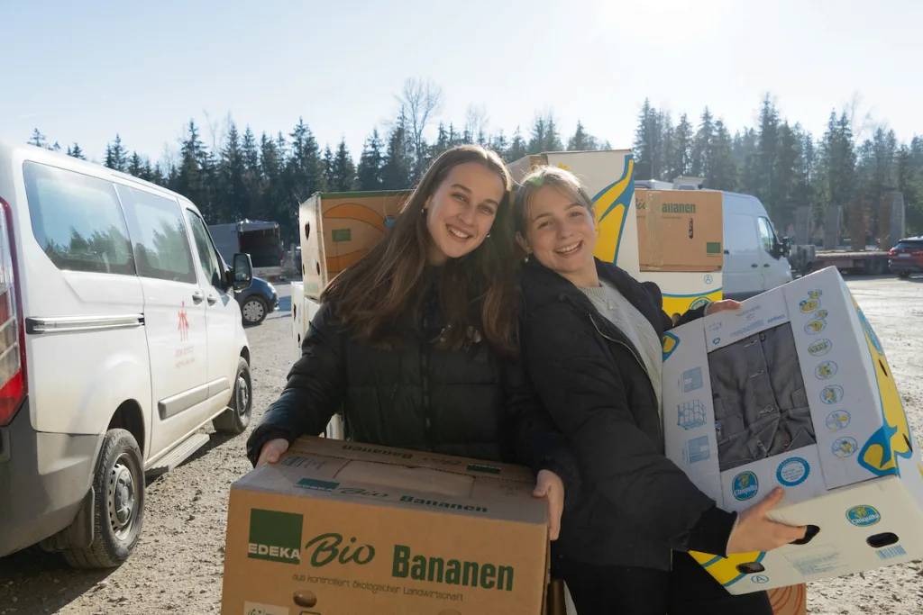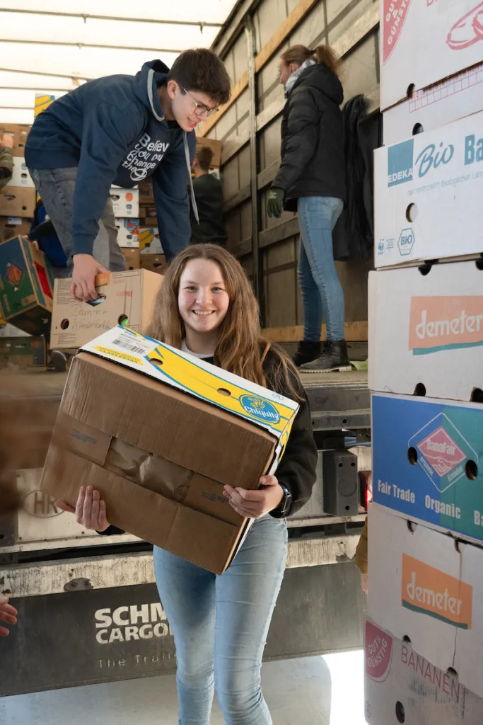 Anschließend werden die diese zum Zentrallager in der Nähe von Obing gebracht, von wo aus sie von den Jugendlichen des Regnum Christi auf LKWs verteilt werden und zu denjenigen gelangen, die sie am dringendsten benötigen.