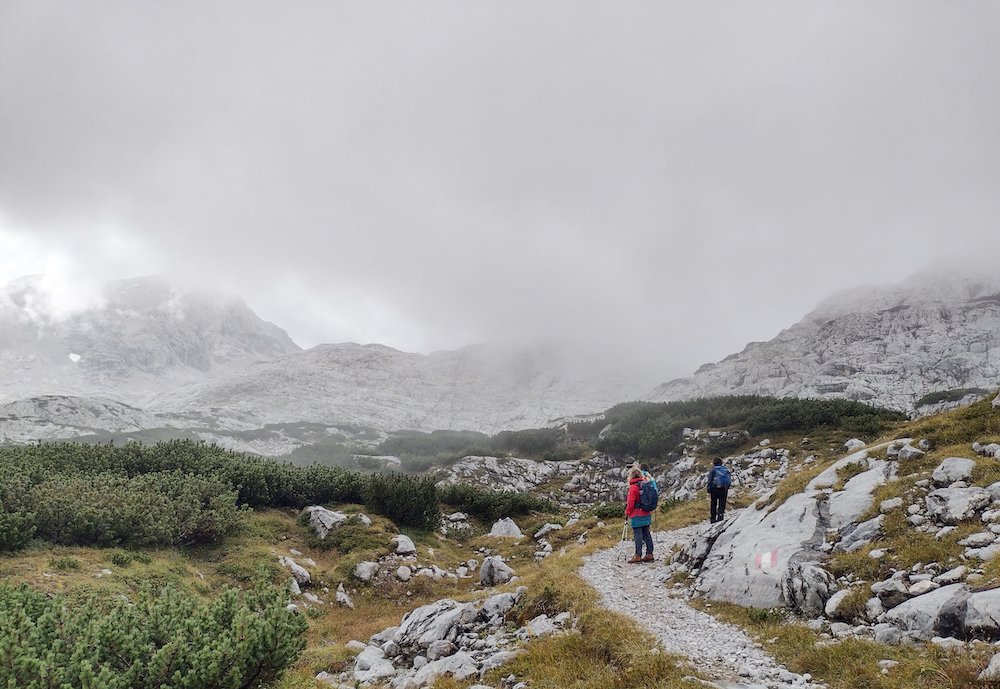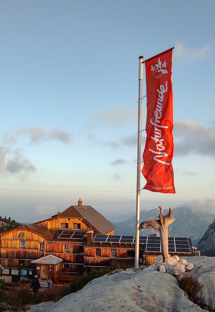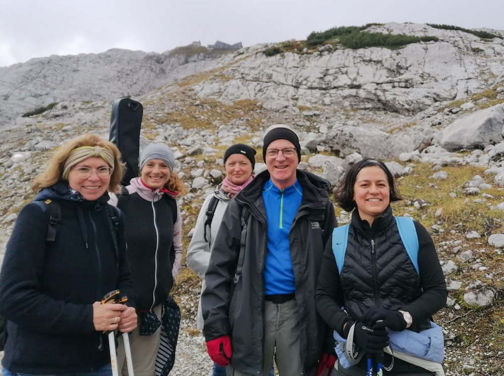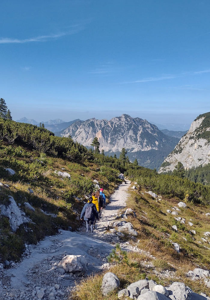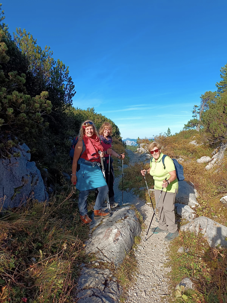 Bei prachtvollem Herbstwetter machten sich die Teilnehmerinnen an den Aufstieg zur Wiesberghaus, das sich in der Nähe des Dachsteinmassivs in den österreichischen Alpen befindet und auf etwa 1.884 Metern Höhe liegt. Zur Wahl standen ein eher gemütlicher Höhenweg, den man über zwei Seilbahnen erreicht und ein längerer Direktanstieg in unberührter Natur.
