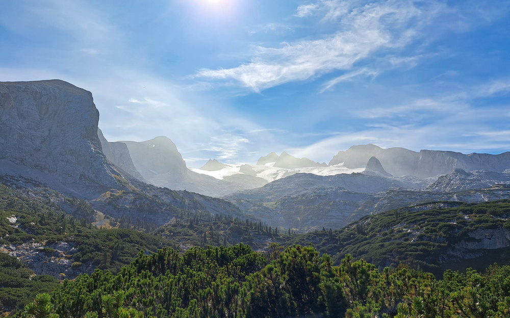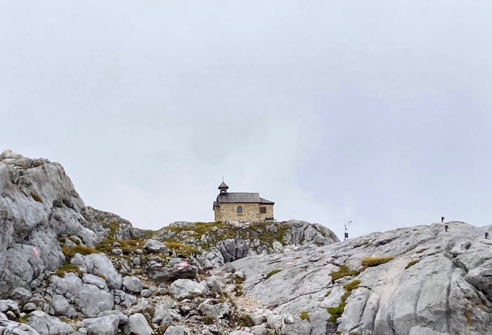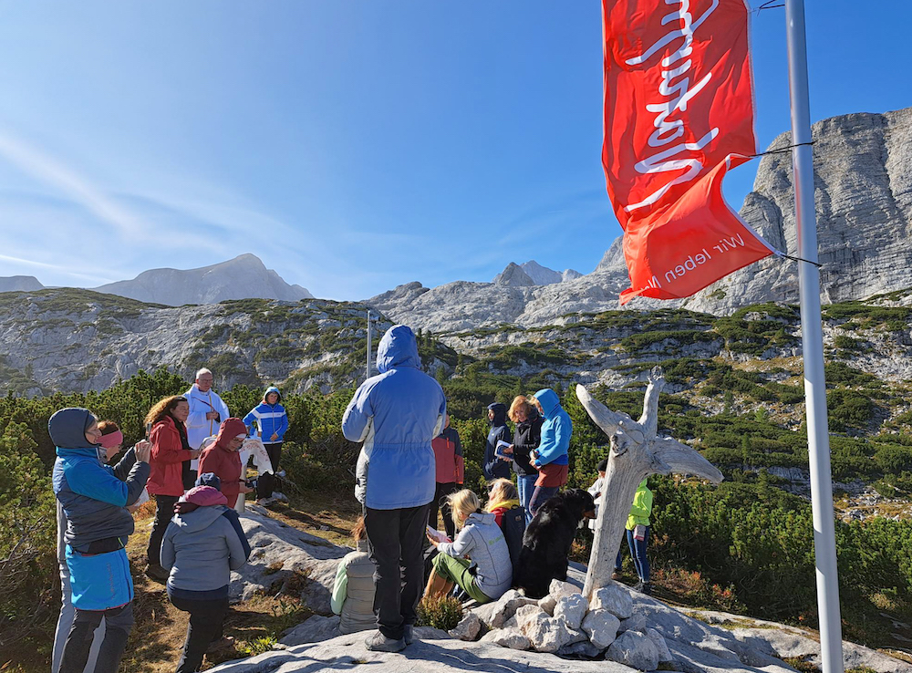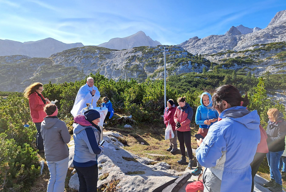 Von der Unterkunft aus unternahmen die Teilnehmer eine Wanderung zu Simonyhütte, die auf 2.203 Metern Höhe liegt und einen spektakulären Blick auf die umliegenden Gipfel und Gletscher des Dachsteins bietet. Unterhalb des Gletschers feierten sie die heilige Messe in der Dachsteinkappelle.