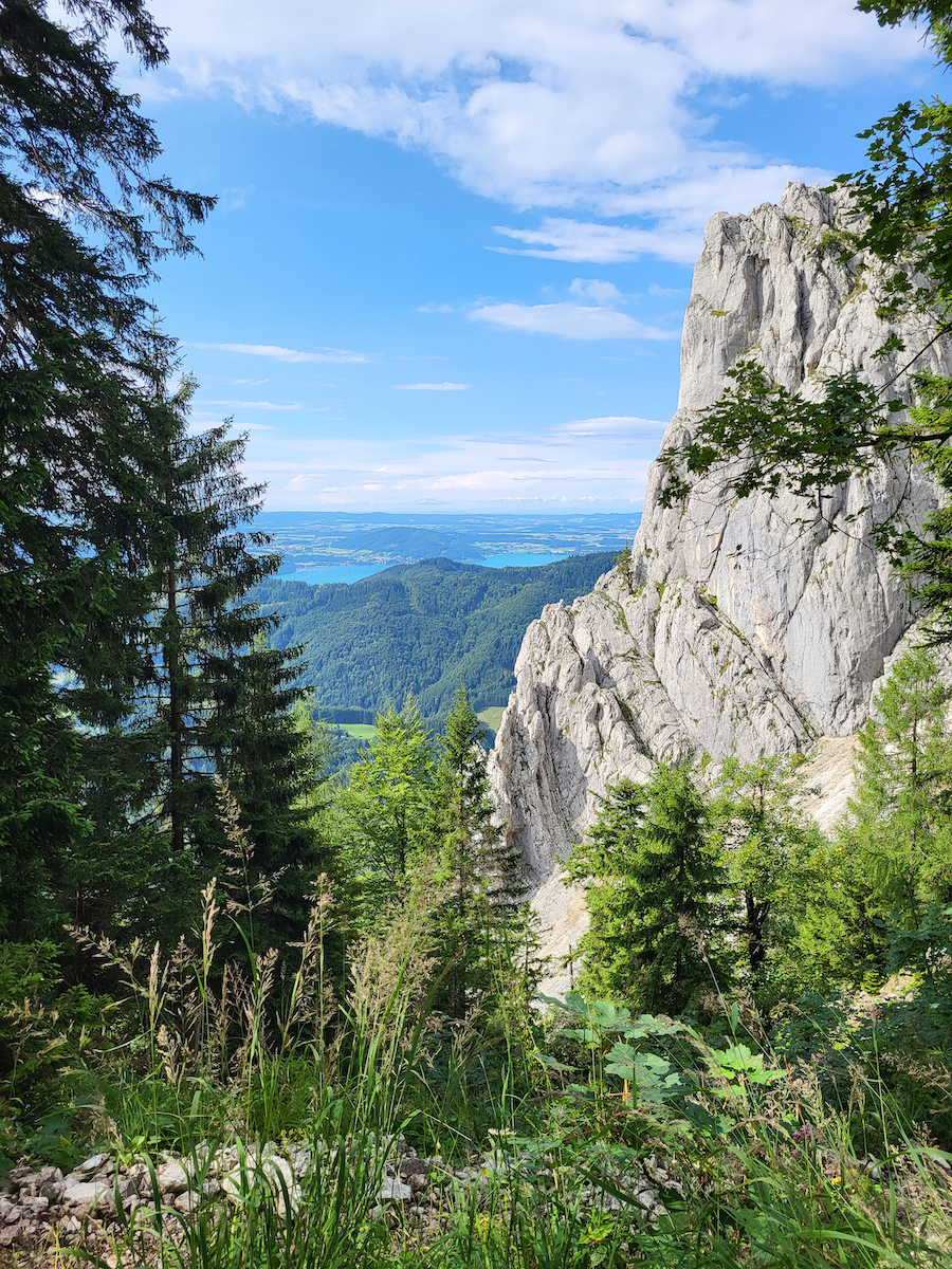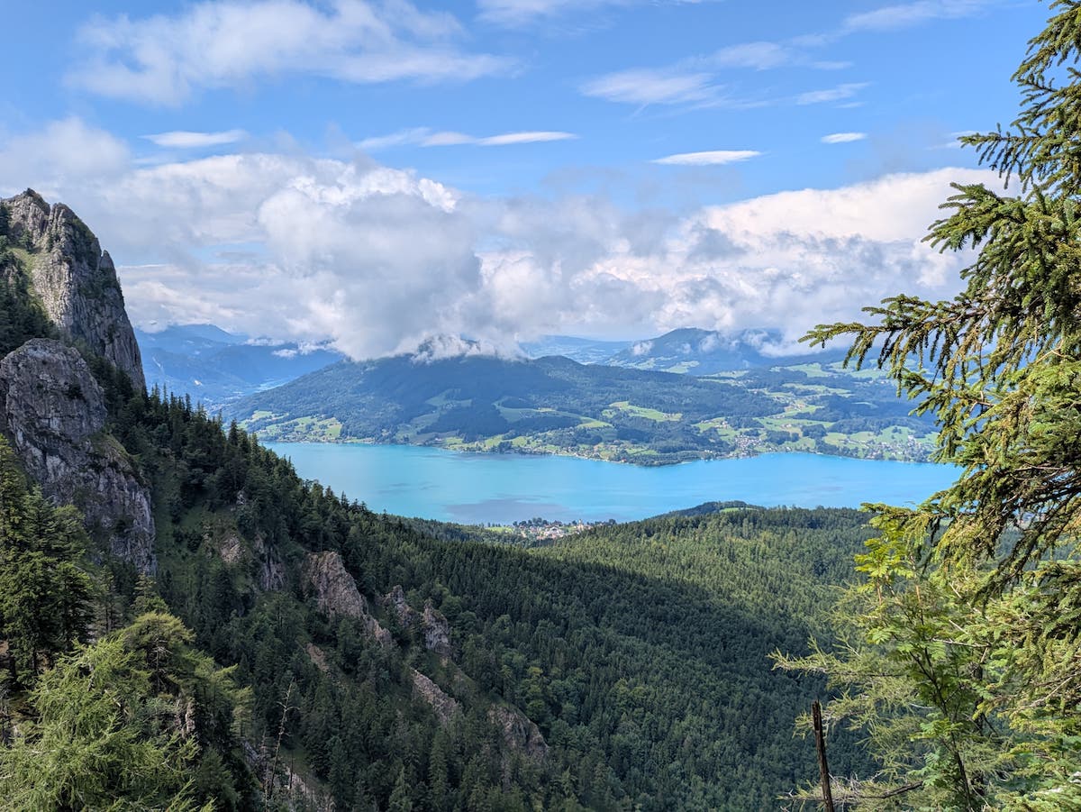 Der Abstieg begann zunächst im Nebel und bei kühlen Temperaturen. Doch schon nach wenigen Höhenmetern lichtete sich der Himmel, die Sonne brach durch und eröffnete den Blick auf die majestätische Bergwelt und den türkisfarbenen Attersee. Diese Kulisse unterstrich die Worte aus dem abschließenden geistlichen Impuls: