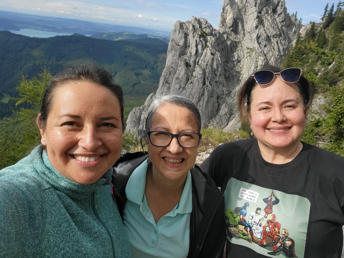 Schon zu Beginn hatten die Teilnehmerinnen den Eindruck, Gottes Wirken erleben zu dürfen: Trotz angekündigten Regens startete die Wanderung von der Kienklause zum Hochleckenhaus bei Sonnenschein und angenehmen Temperaturen. An einer Aussichtsstelle mit Blick auf den Attersee gab Eva Gloserová (gottgeweihte Frau im Regnum Christi) den Frauen einen geistlichen Impuls mit: „Gott lädt uns ein, uns auf den Weg zu machen. Er geht voran und will uns beschenken.“