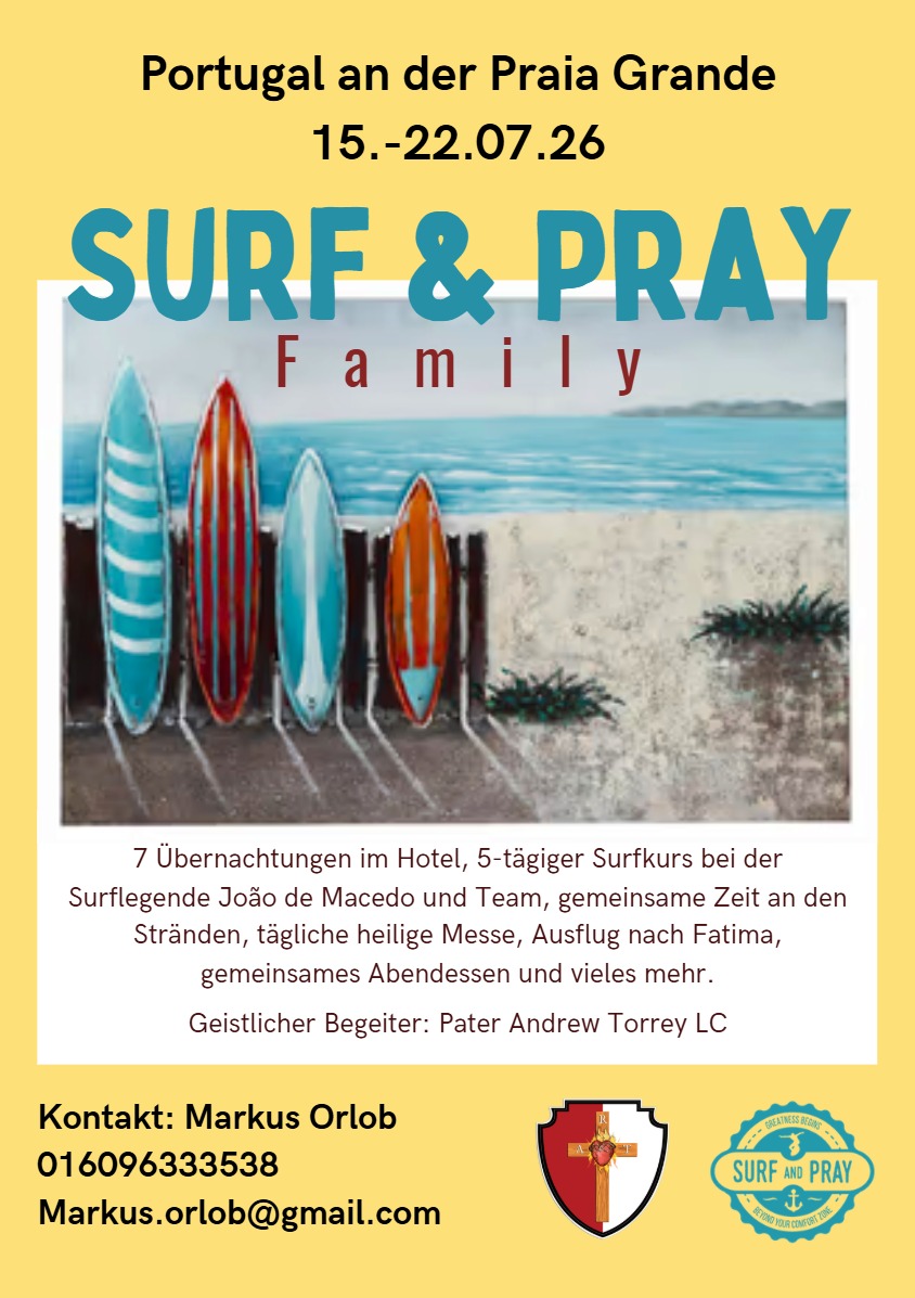 Das beliebte Angebot von Surf and Pray in Portugal gibt es jetzt auch für Familien. Neben einem fünftägigen Surfkurs bei der Surflegende Joao de Macedo und seinem Team stehen auch eine tägliche heilige Messe sowie eine Wallfahrt nach Fatima auf dem Programm.