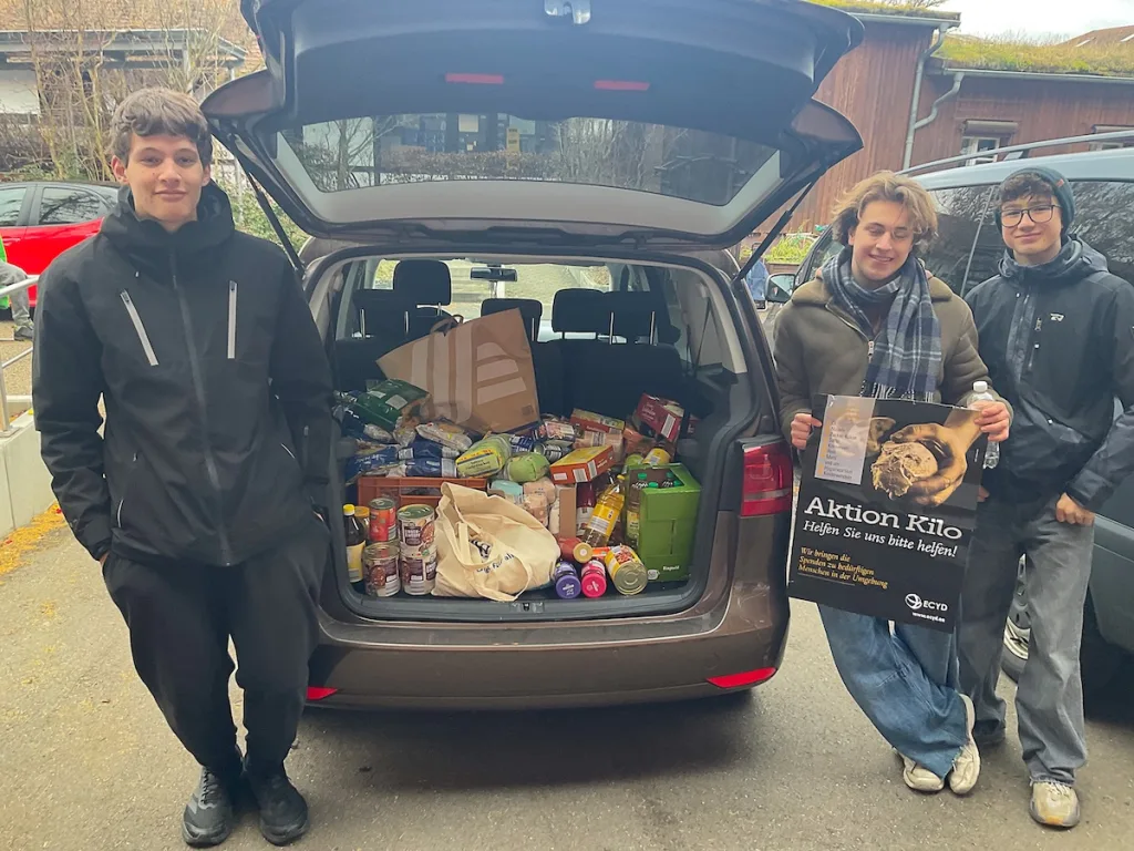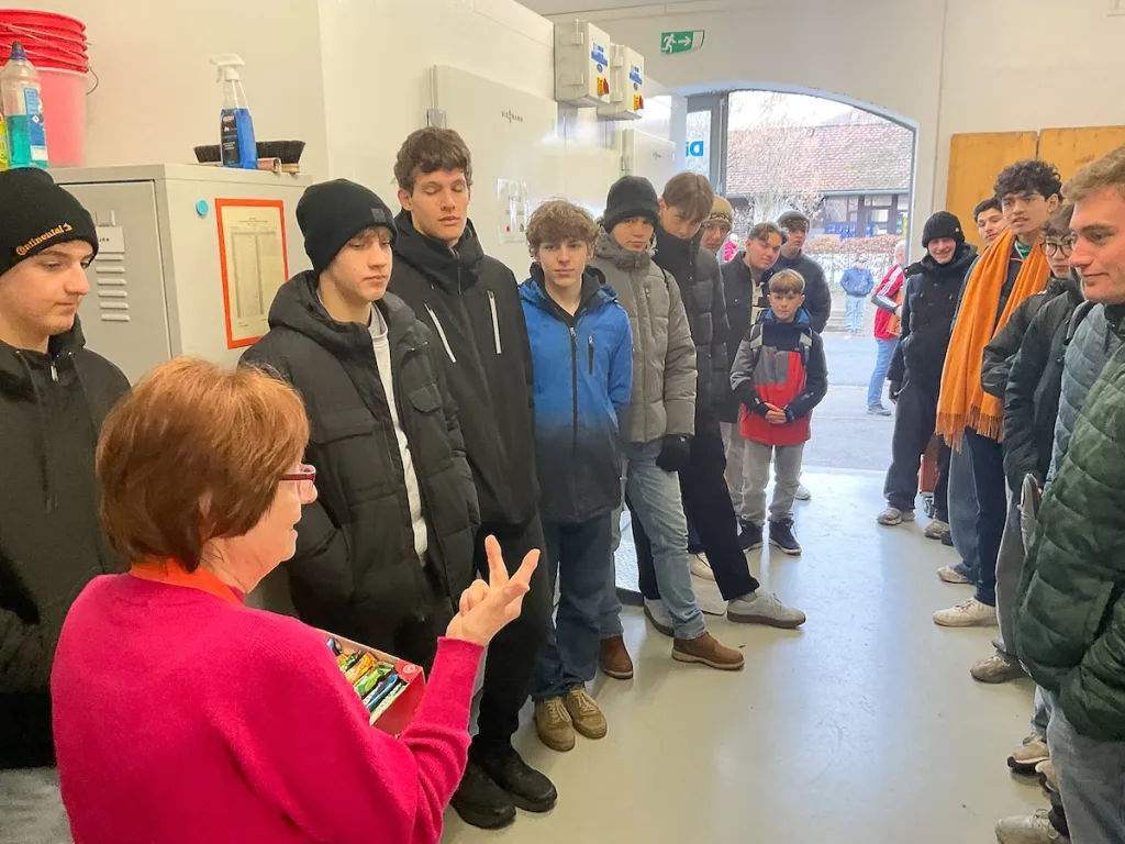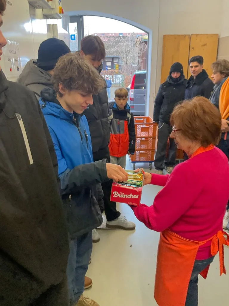 Die Jungs sammelten für die Erlanger Tafel, bei der das Sammelergebnis von rund 30 Kisten und geschätzt über 500 Kilo abgegeben wurde. Dabei begegneten die Jugendlichen auch der langen Schlange von Menschen verschiedenen Alters und Herkunft, die für ihren Lebensunterhalt auf die Lebensmittel der Tafel angewiesen sind.