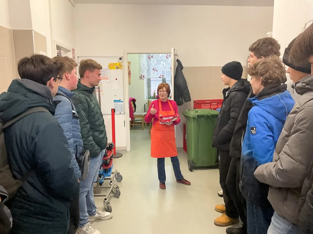 Erika Moertel empfing die Gruppe und drückte ihren Dank für das Engagement aus: „Der Bedarf wird größer und die Spenden geringer. Eure Sammlung ist für mich ein wichtiger Grundstock für die Versorgen der Menschen, die zu uns kommen.“