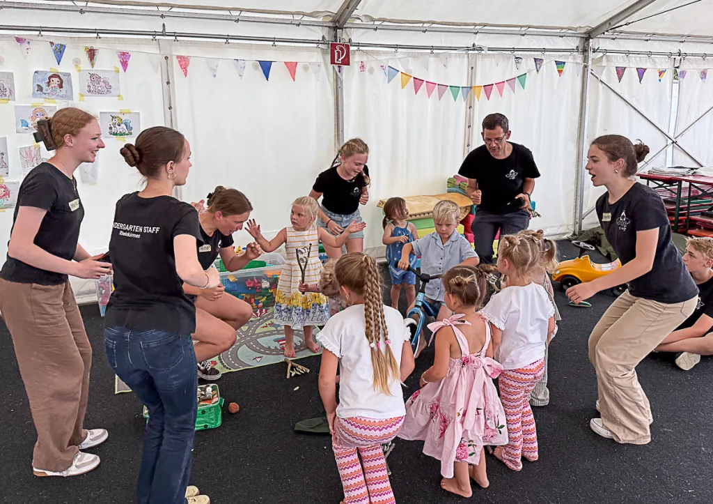 Jeden Tag überraschen die Jugendlichen die Kinder mit besonderen Aktionen: An einem Tag dürfen sie sich schminken lassen und bekommen einen Fußball auf die Wange gemalt oder ein Löwengesicht. An einem anderen Tag dürfen sie das Polizeiauto und die Feuerwehrwagen auf dem Kirmesgelände besichtigen. Bei einer Sportolympiade können sie ihr ganzes Geschick unter Beweis stellen. An heißen Tagen gibt es Wasserspiele. Und beim Kasperletheater fiebern sie mit, ob der Kasperle die Prinzessin wiederfindet, die sich im Wald verlaufen hat.