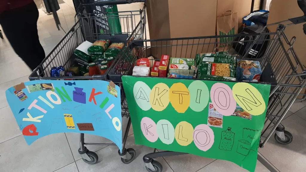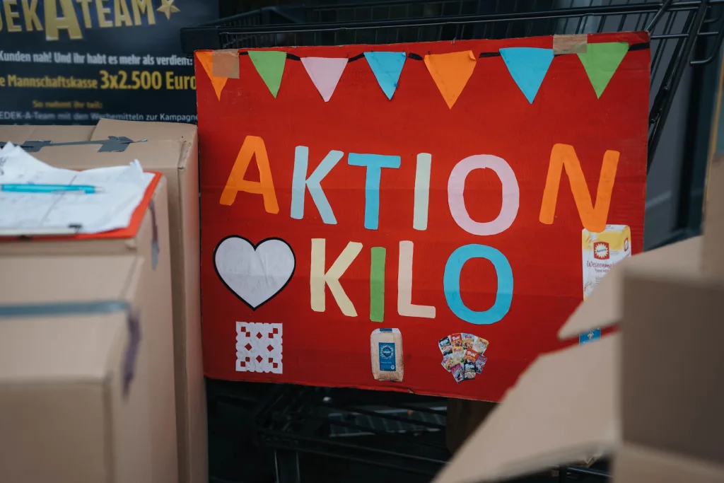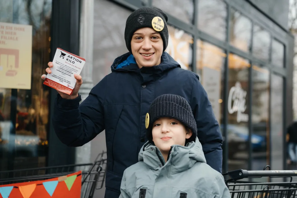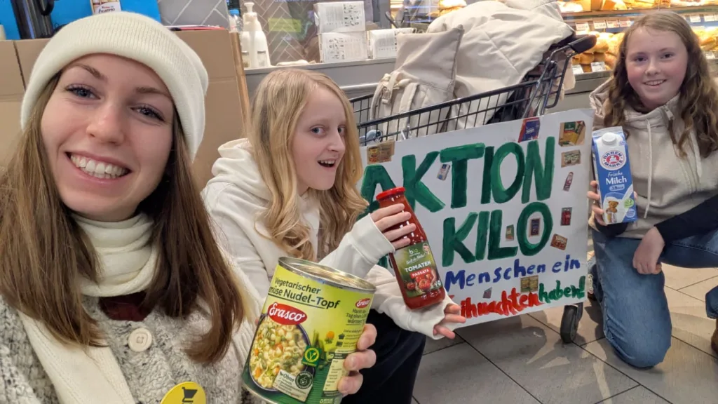 Am Vormittag machten sich 90 Kinder und Teenager auf den Weg zu insgesamt fünfzehn Geschäften in Düsseldorf, Ratingen, Neuss und Kaarst. Dort sprachen sie trotz nasskalter Bedingungen die Kundinnen und Kunden an den Eingängen an und baten sie, ein Kilo haltbare Lebensmittel mehr einzukaufen und dieses zu spenden. Die Kinder standen im Regen, übten Mut, überwanden Schüchternheit und erfuhren, wie berührend echte Großzügigkeit sein kann. Die Resonanz der Menschen war enorm: Am Ende des Tages lagen 2,7 Tonnen Lebensmittel in den Sammelwägen der Aktion Kilo.