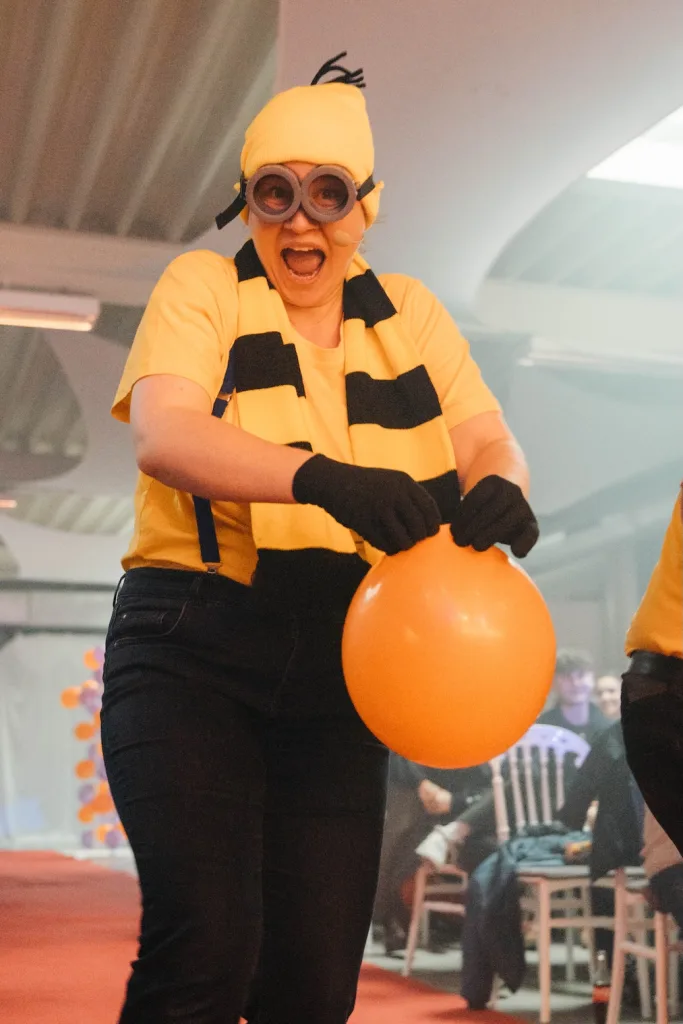 Die Bühne verwandelte sich in eine Welt voller Geschichten, die zugleich zum Lachen, Nachdenken und Staunen einluden. Die Minions erklärten, wie kleine Gesten Freude in den Alltag bringen können „Probiert neue Dinge aus, auch wenn sie albern wirken. Verbringt Zeit mit Freunden und Familie.“