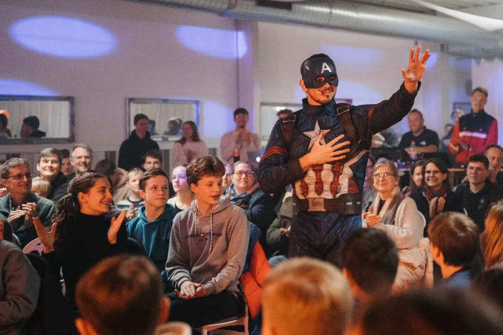 Am Nachmittag kamen schließlich alle Generationen zum Highlight des Tages zusammen. Etwa 200 Personen füllten den Saal im ApostelHauses, um die Show zu erleben, die vollständig von Jugendlichen und jungen Erwachsenen vorbereitet wurde. Ein zwanzigköpfiges Team schrieb das Skript, übernahm Regie, stellte Kostüme und Requisiten her, steuerte Technik und Licht und schlüpfte in die Rollen beliebter Filmfiguren.