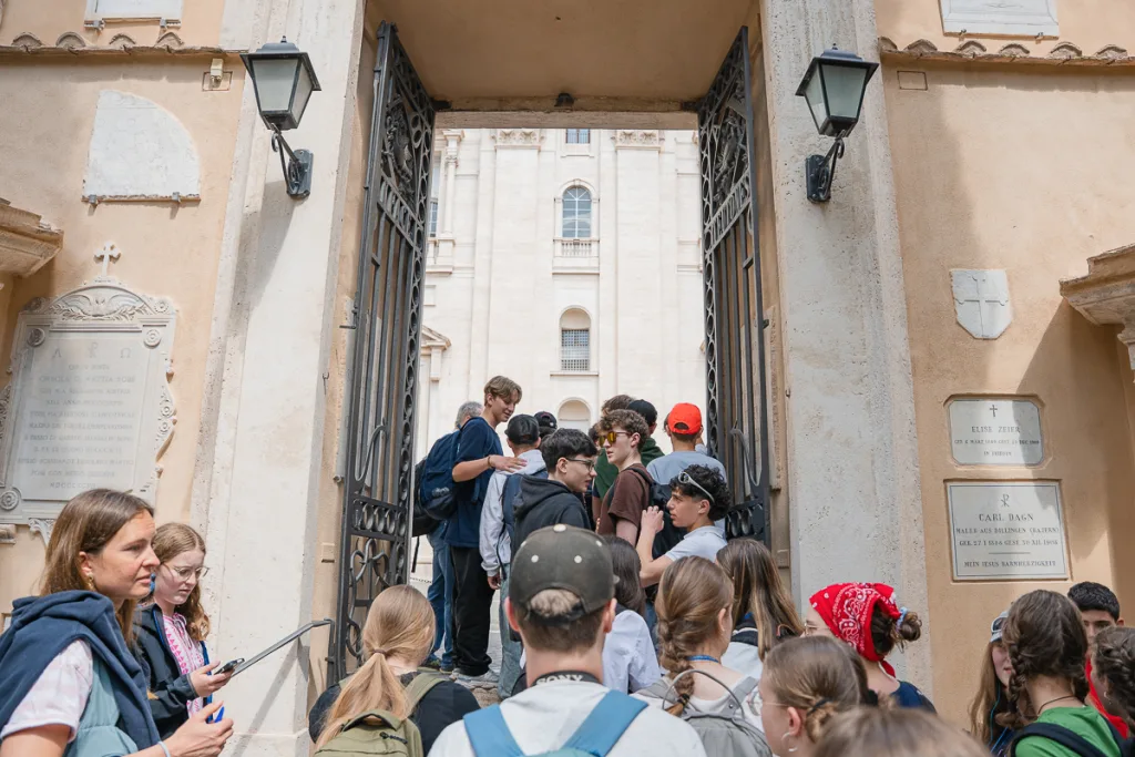 Ein besonderes Erlebnis war der Besuch der Domitilla-Katakomben. Herr Wendel, ein ausgewiesener Kenner, erklärte den Jugendlichen nicht nur die Geschichte, sondern vermittelte auch die Hoffnung der ersten Christen: Sie waren gewiss, dass der Tod nicht das letzte Wort hat, dass Gott ihnen eine ewige Wohnung bereitet hat.