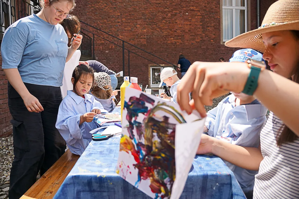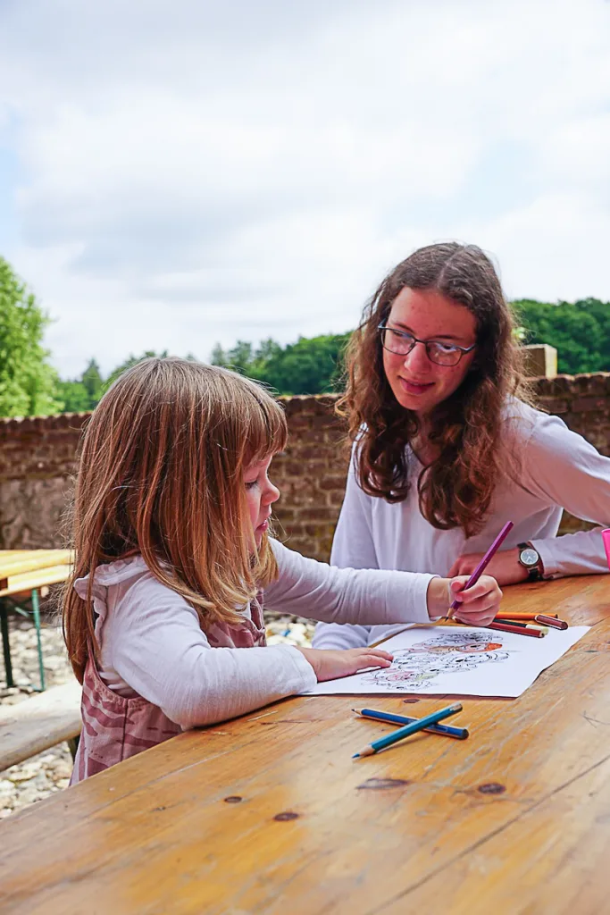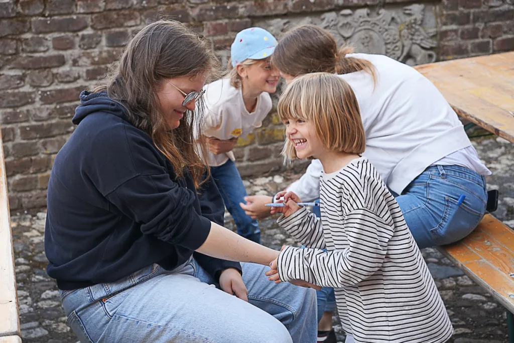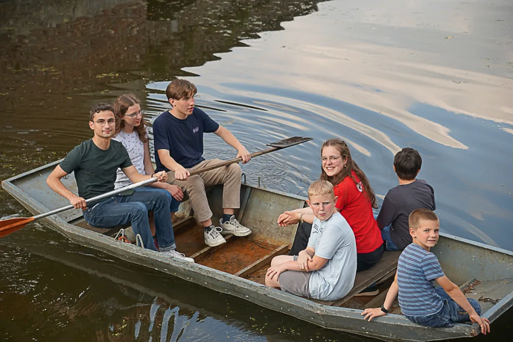 Und die Kinder? Die kamen in diesen Tagen ebenfalls auf ihre Kosten. Bei einer Rallye nach Kevelaer mussten sie vielfach ihr Geschick unter Beweis stellen, ein kleines Stehgreiftheater aufführen und Tiere suchen. Das legendäre Gummibärchenspiel durfte ebenfalls nicht fehlen. Ein Highlight war ein Tag im Freizeitpark „Irrland“, wo sie auf Heuballen toben konnten, Wasserrutschen ausprobieren konnten und mit Holzklötzen ein riesiges Iglu bauten.
