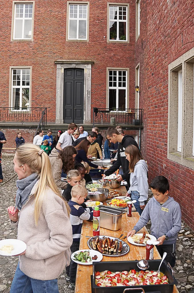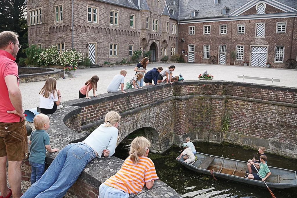 „Wow. Das ist ja ein echtes Schloss! Gibt es hier auch ein Verließ?“ staunte der kleine Georg, als er aus dem Auto stieg. Zusammen mit 35 anderen Kindern wird er die nächsten drei Tage auf den Wiesen rund um das Schloss Fußball spielen, in der Schlosskapelle beten und vieles mehr erleben. Mit Betreuern und Helfern sind es 75 Personen, die zur NET-Familienfreizeit auf Schloss Wissen am Niederrhein am Wochenende von Christi Himmelfahrt zusammengekommen sind.