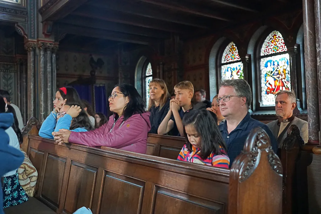 „Ich bin so froh, dass wir hier als Familie einfach auftanken können“, erzählt eine junge Mutter schon nach wenigen Stunden. Die Eltern erwartet ein abwechslungsreiches Programm. Am ersten Tag beschäftigen sie sich mit dem Thema Stress. Viele Eltern leiden unter ständigem Zeitmangel, innerer Leere, Erreichbarkeits- und Konsumdruck. Anhand des Buches „Das Ende der Rastlosigkeit“ von John Mark Comer erläutert P. Mariano Ballestrem LC, wie Stille, das bewusste Leben des Sonntags, Einfachheit im Lebensstil und Entschleunigung helfen können, Ruhe zu finden. „Wenn du im Aldi einkaufst und zur Kasse gehst, wähle auch mal bewusst die lange Schlange! Du musst deinen Alltag nicht immer maximal optimieren“, legt er den jungen Eltern ans Herz. Das bewusste Freihalten von Zeiten für das Gebet ist ebenso wertvoll, um Kraft zu schöpfen. So nutzten die Eltern die Tage, um in der Anbetung Zeit mit Gott zu verbringen.