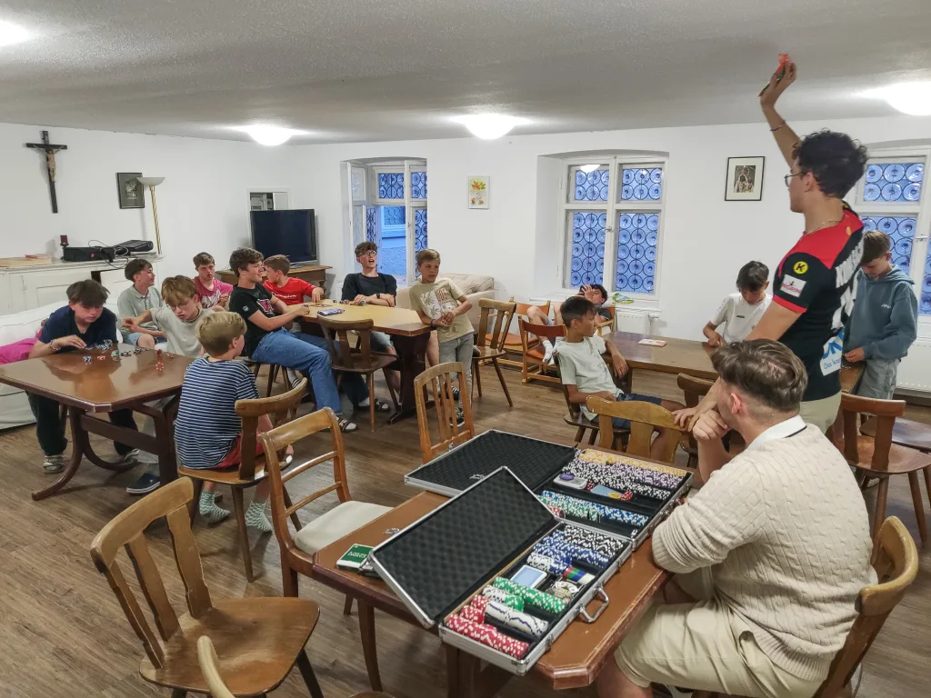 Natürlich kam der Spaß nicht zu kurz: Schwimmbadbesuch, Stadtrallye mit Eis, das legendäre „Gummibärchenspiel“ und ein Casinoabend sorgten für Abwechslung. Besonders beliebt war die „Gute-Nachrede-Runde“ am Abend, bei der jeder etwas Positives über die anderen sagen konnte. So lernten die Jungs, das Gute im Anderen zu sehen und auszusprechen.