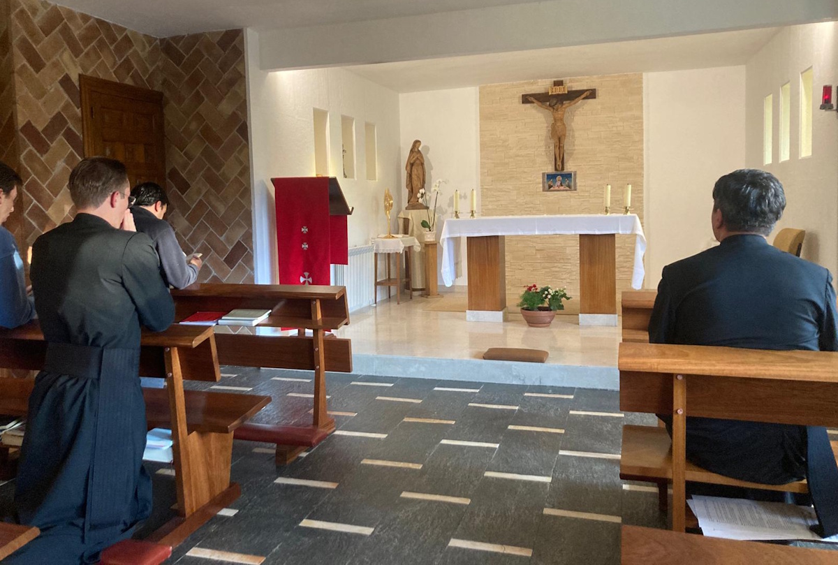 Simon: Meist vergehen die Tage super schnell. Der Alltag ist sehr vielfältig. Wir fangen mit dem Morgengebet und der hl. Messe an, dann Frühstück. Am Morgen haben wir Unterricht, z.B. Latein und Christologie – sehr spannende Themen. Dann folgt wieder Zeit zum Gebet und das Mittagessen. Am Nachmittag haben wir etwas Freizeit; unsere Gruppe ist sehr aktiv und wir machen viel Sport. Am Abend ist noch einmal Zeit fürs Gebet, für Anbetung, schließlich Abendessen. Wir verbringen den Tag hauptsächlich zusammen. Im Noviziat hat aber auch jeder sein eigenes Zimmer, in das er sich zurückziehen kann.