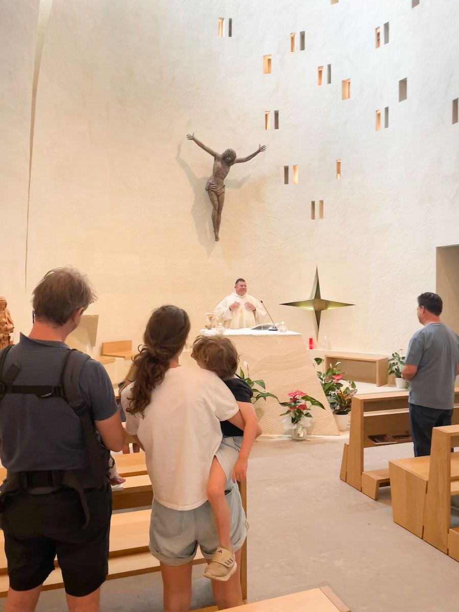 „Wir waren dieses Jahr das 4. Mal in Bibione dabei. Warum zur „Hoch-Reisezeit“ mitten im August von Stuttgart an die Adria? Schlicht, weil es den Aufwand wert ist. Wir haben diese Urlaubswoche mit der Begleitung von zwei Priestern als wertvollen Schatz erkannt für unsere Seele, unsere Ehe und unsere Familie. Ein schönes Ambiente im Hotel mit Vollverpflegung, da muss ich mich um nichts kümmern. Ein wunderbarer Sandstrand und warmes Meerwasser für Kinder, Austausch mit anderen Familien, die Jesus ins Zentrum stellen wollen mit allen Herausforderungen, die dies im Alltag mit sich bringt. Und als Höhepunkt die Begleitung in dieser Woche durch Priester, die mit Liebe und tiefer Freude täglich die Heilige Messe feiern, für Gespräche und Beichte nahezu 24/7 zur Verfügung stehen. Eucharistische Anbetung, gemeinsames (Rosenkranz)Gebet sind Angebote, die jede Familie annehmen kann, wie es in den eigenen Tagesablauf und zum Alter der Kinder passt.“