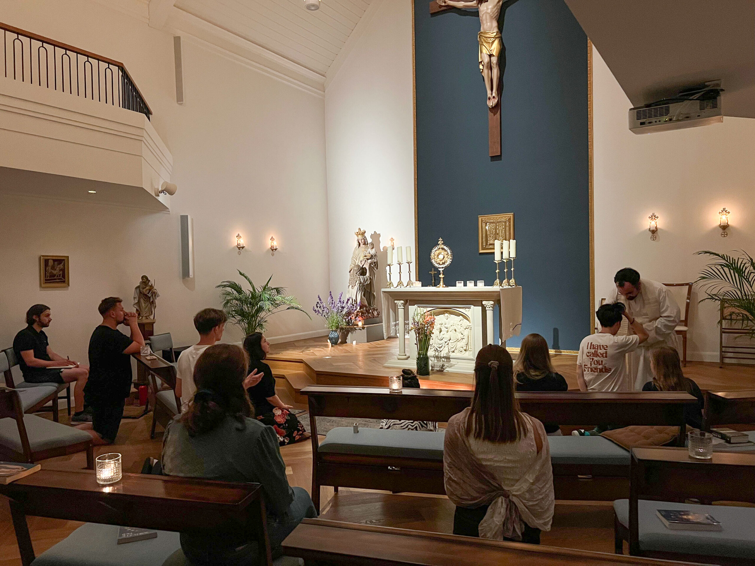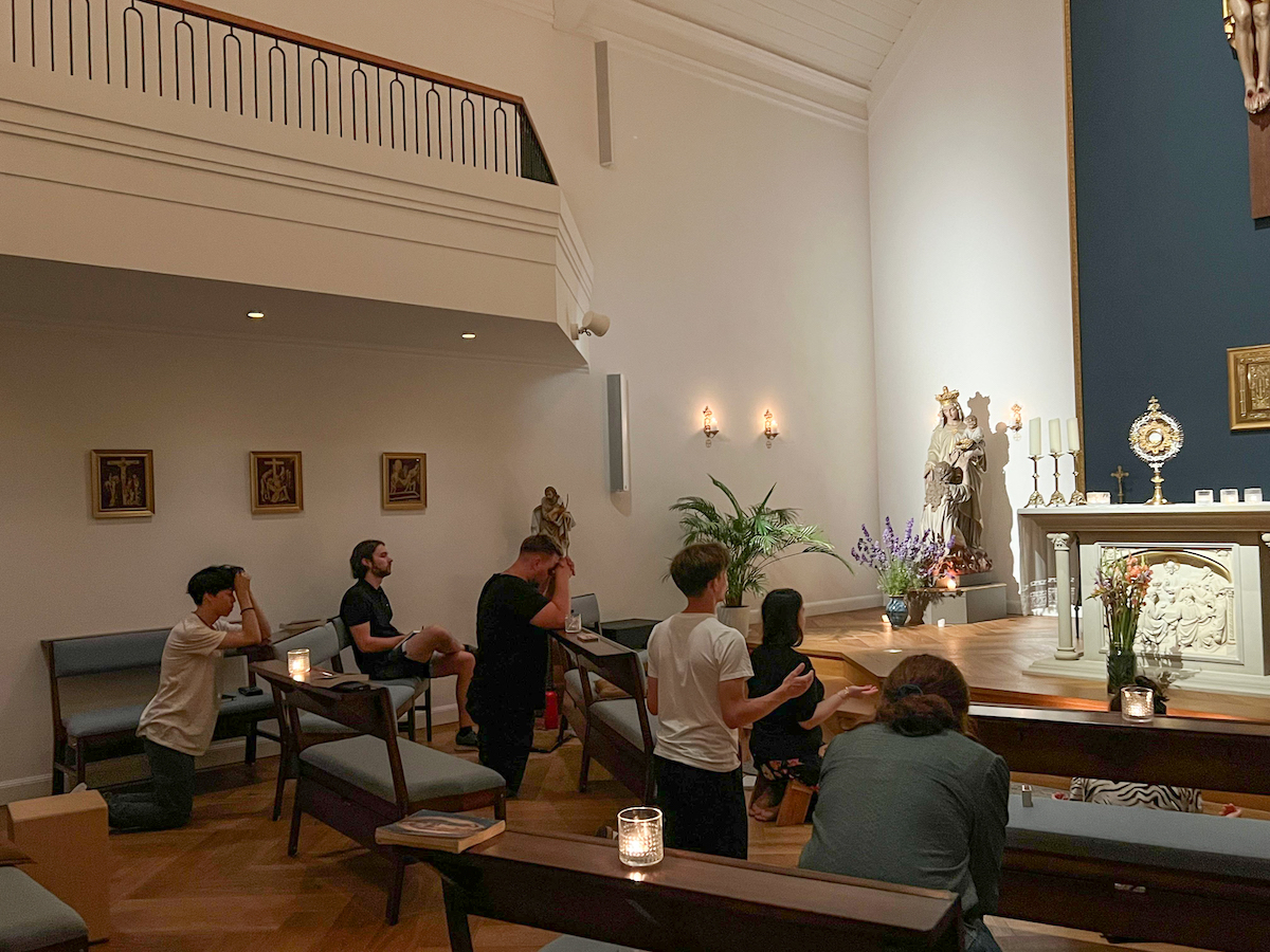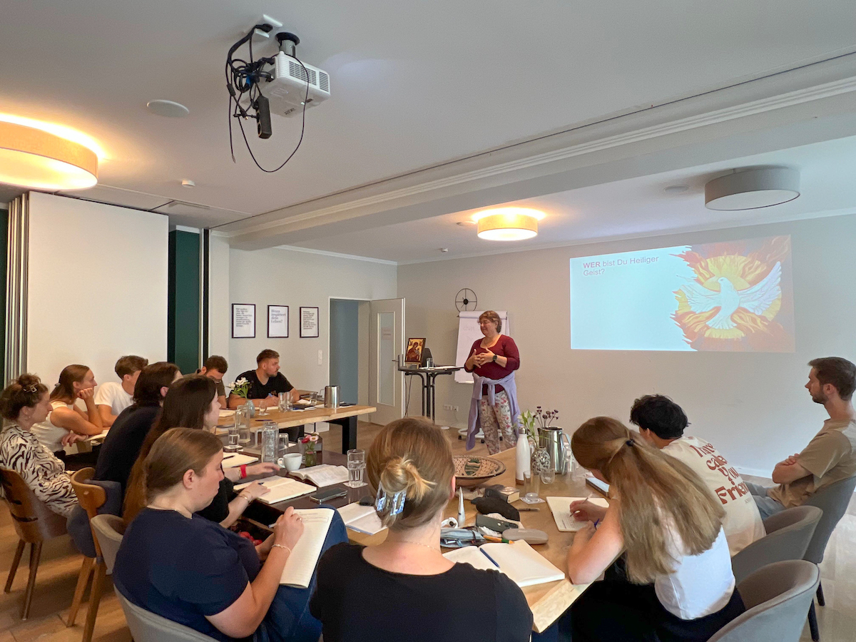 Zurück in Deutschland im ApostelHaus Ratingen übertrugen die Teilnehmenden das in Rom Erlebte in den Alltag. Der Tagesrhythmus war klar strukturiert: morgens begannen sie mit Anbetung und gemeinsamen Gebet, bis zum Mittag folgten zwei Seminarsessions. Am Nachmittag hatten sie Freizeit, anschließend stand eine weitere Einheit auf dem Programm, danach feierten sie die Heilige Messe, trafen sich in Kleingruppen – und beschlossen den Tag abends mit der Komplet. Dieser Takt schuf Tiefe ohne Überforderung und ließ geistliche Impulse wirken.