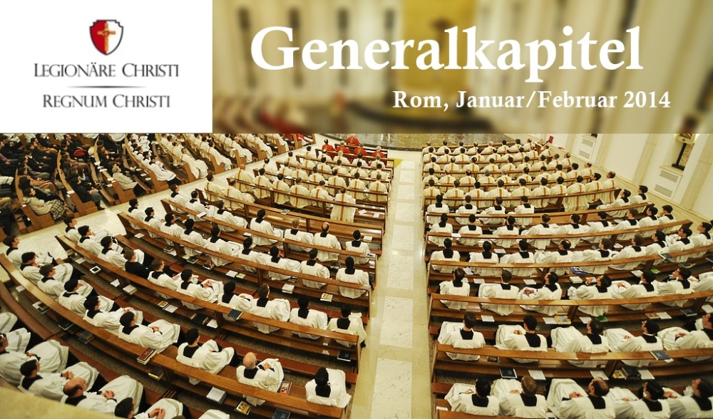 ● 21. Januar 2014: Gegenstand der Plenarsitzungen war die Bearbeitung jenes Teils der Ordensregel, der die drei Evangelischen Räte – Armut, Keuschheit und Gehorsam – thematisiert. Den Sitzungen stand Kardinal De Paolis vor. – Am Generalkapitel der Legionäre Christi nehmen außerdem die fünf Mitglieder der internationalen Kommission für das Regnum Christi als Zuhörer teil. Eigens dafür war in diesen Tagen auch Frau Lucia Hauser (Deutschland) angereist und bei den Sitzungen anwesend.