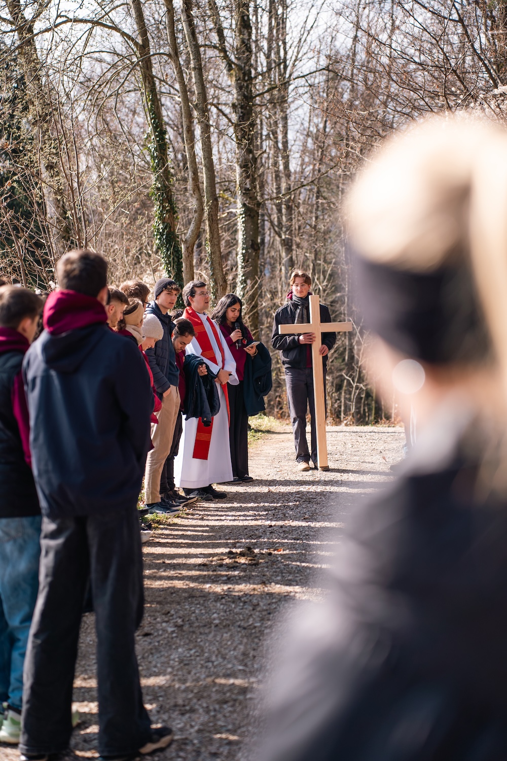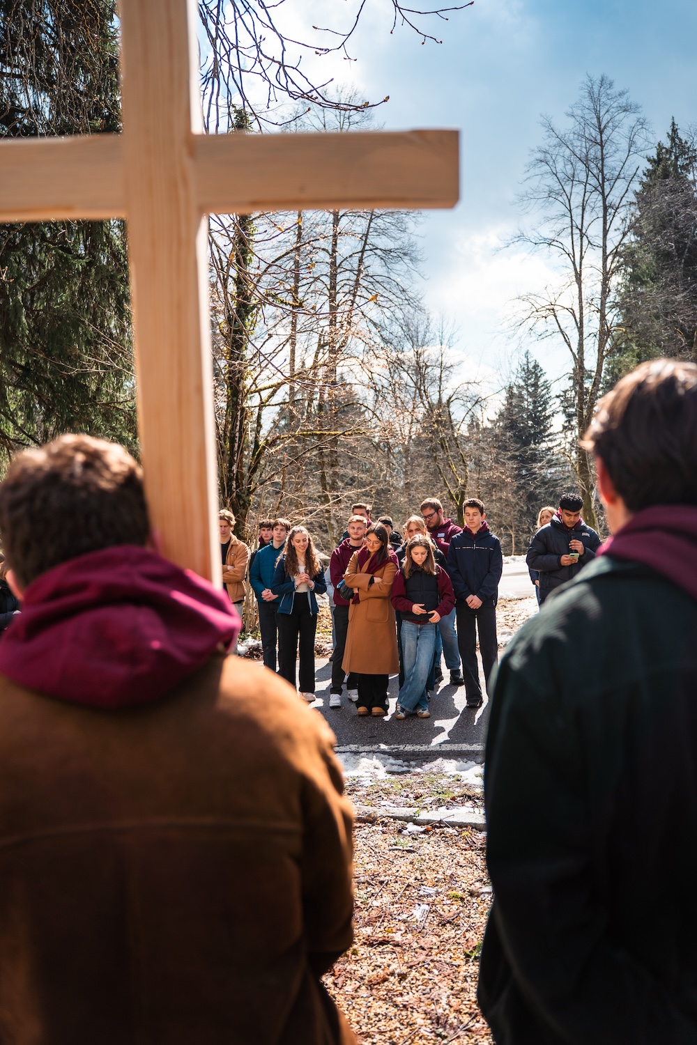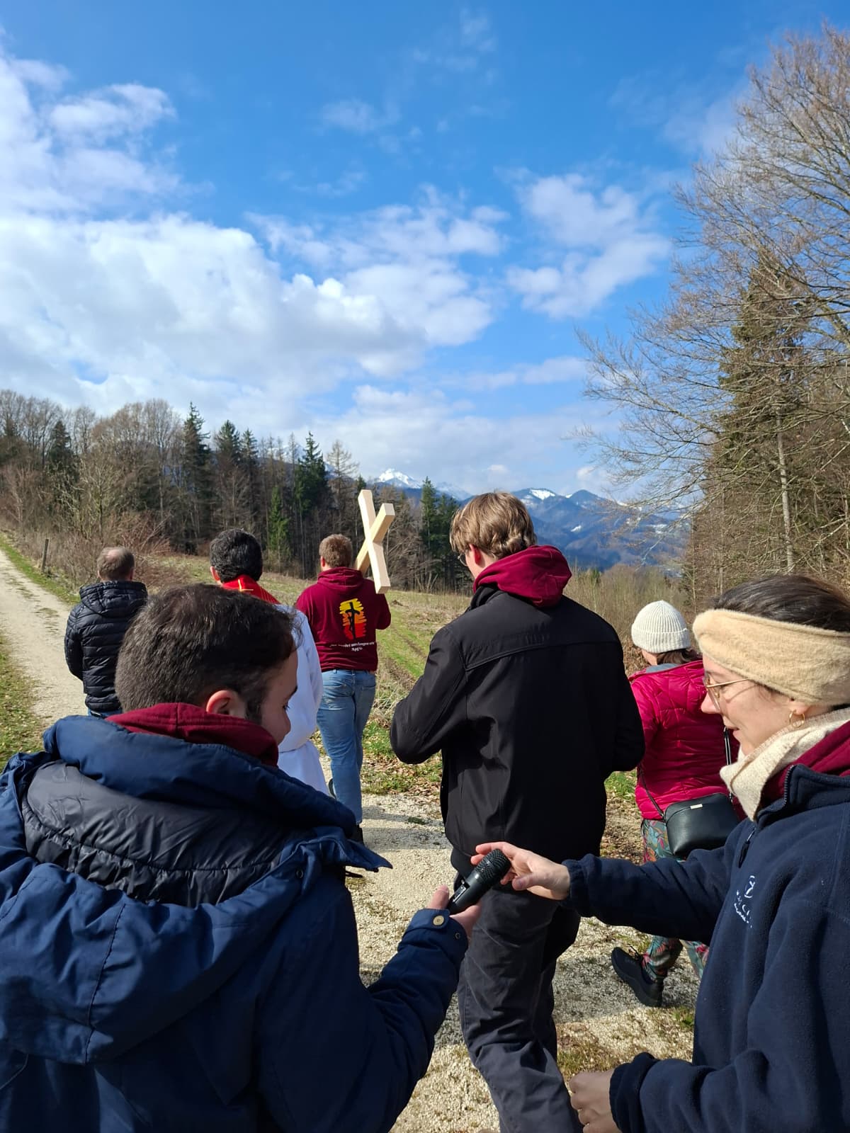 Neben den liturgischen Feiern der der Karwoche und der Ostermessen standen Kindergartenbesuch, Sportturnier für Jugendliche, ein Seniorennachmittag und eine Filmvorführung im Pfarrheim auf dem Programm. Ein besonderes Highlight war der Kreuzweg zur Wallfahrtskirche Maria Eck, dessen Stationen die Jugendlichen selbst gestalteten. Der Aufstieg bei herrlichem Frühlingswetter bot neben den geistlichen Impulsen auch herrliche Aussichten auf die bayerischen Alpen, den Chiemsee und das Voralpenland.