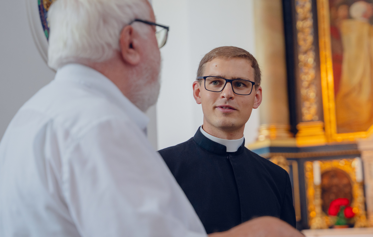 P. Peter: Zweifel über das Priestertum oder besonders auch über das Ordensleben hatte ich im Laufe meiner Ausbildungsjahre, doch in diesen Monaten als Diakon nicht. Dennoch gab es vor allem wegen vielerlei Aufgaben durchaus Zeiten, in denen ich an meine Grenzen kam – Momente, in denen ich mich überfordert fühlte oder fragte, ob ich diesem Leben wirklich gewachsen bin. Ein befreundeter Priester bestärkte mich bei einem Telefonat: „Jesus hat die Welt schon erlöst; das ist nicht deine Aufgabe. Sei einfach ein treues Werkzeug in Seiner Hand.“ Dieser Gedanke hat mir sehr geholfen, da sich mein Leben als Priester um Gott drehen soll und wie er durch mich zu den Menschen gelangen möchte. „Er muss wachsen, ich aber geringer werden“ (Joh 3,30), sagte schon Johannes der Täufer über Jesus.