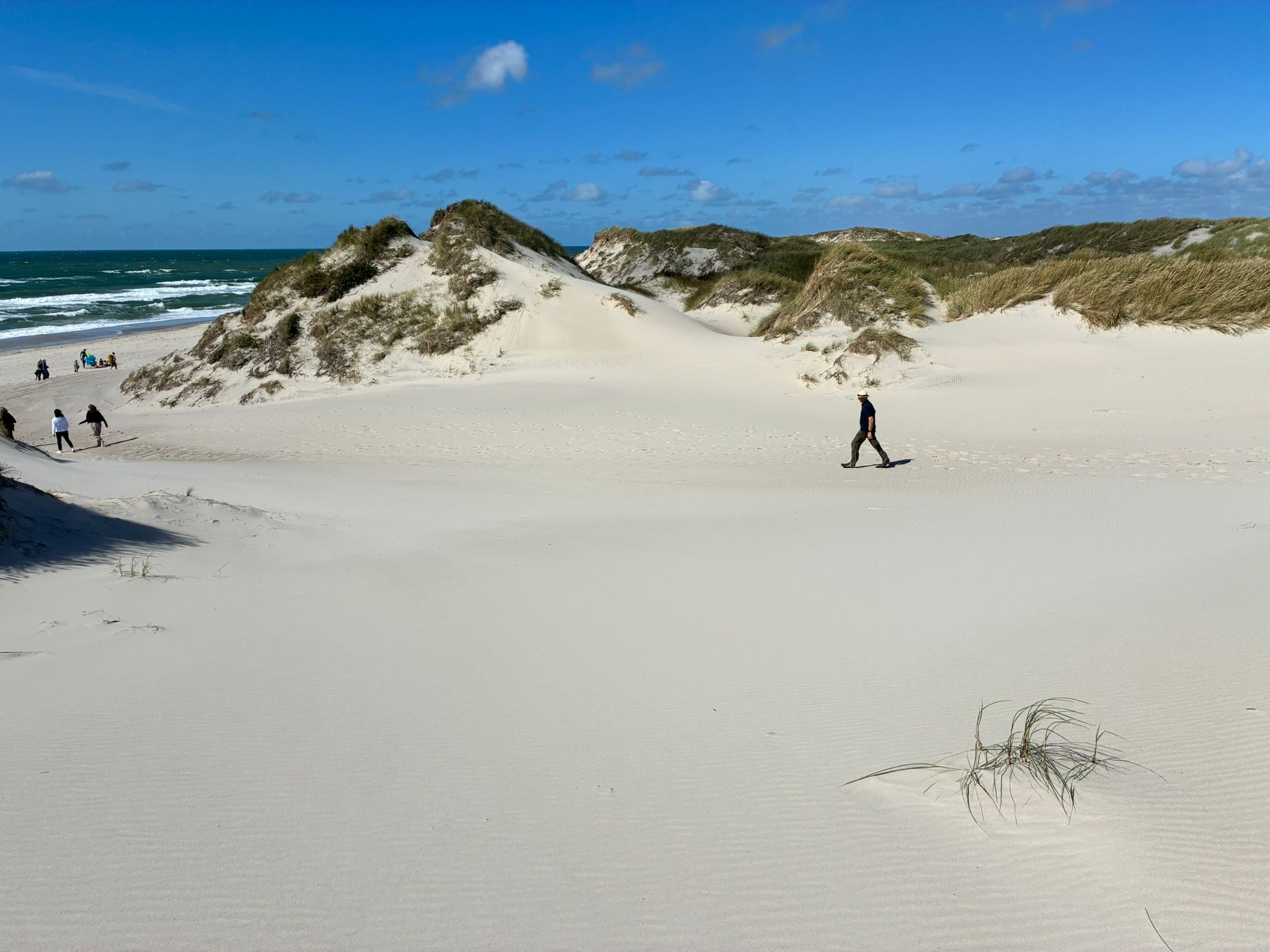 Frau Lagier: Jeanette und Georg Karbig haben ein großes Ferienhaus in Dänemark/Hvide Sande ausfindig gemacht, die Kosten dafür haben wir auf die acht Teilnehmer umgelegt. In einem Online-Meeting haben wir festgelegt, wer wann was kocht und was sonst noch gebraucht wird – und dann ging es auch schon am 10. August in aller Früh mit zwei Vans und vollbepacktem Anhänger Richtung Norden.