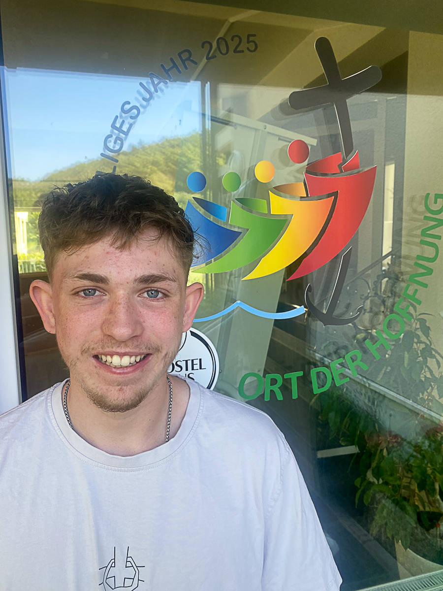 „Ich bin Finley, 16 Jahre alt und komme aus dem Nordschwarzwald. Ich mache sehr gerne Sport , am liebsten Ballsportarten. Ich bin vor einem Jahr dem ECYD beigetreten und habe dort bisher nur positive Erfahrungen mit Jesus gesammelt. In meiner Zeit als Sommercoworker hoffe ich, dass ich dem Regnum Christi und Jesus damit etwas zurückgeben kann und andere Kinder und Jugendliche damit im Glauben motivieren kann.“
