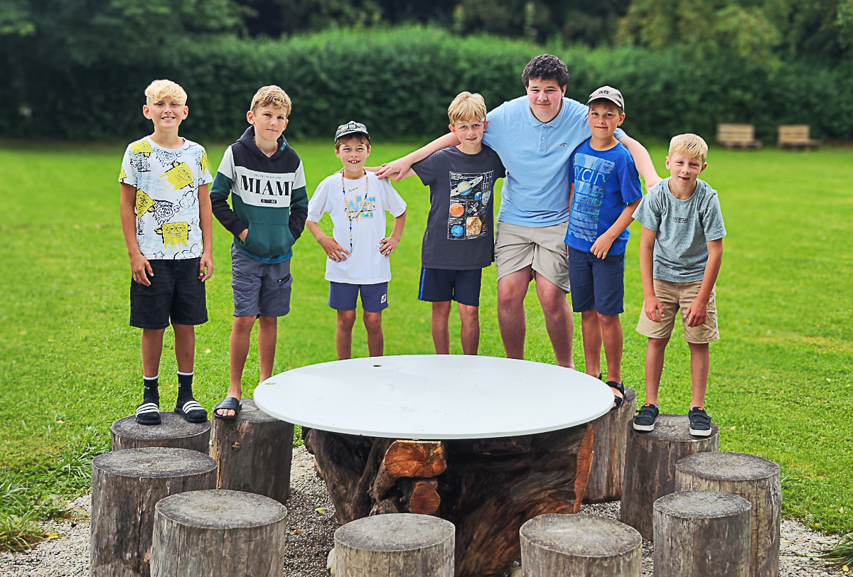 Acht Jungs bereiten sich beim Sommercoworkerkurs des ECYD im ApostelHaus Alzgern auf ihre Einsätze als Betreuer von Kinder- und Jugendcamps vor.