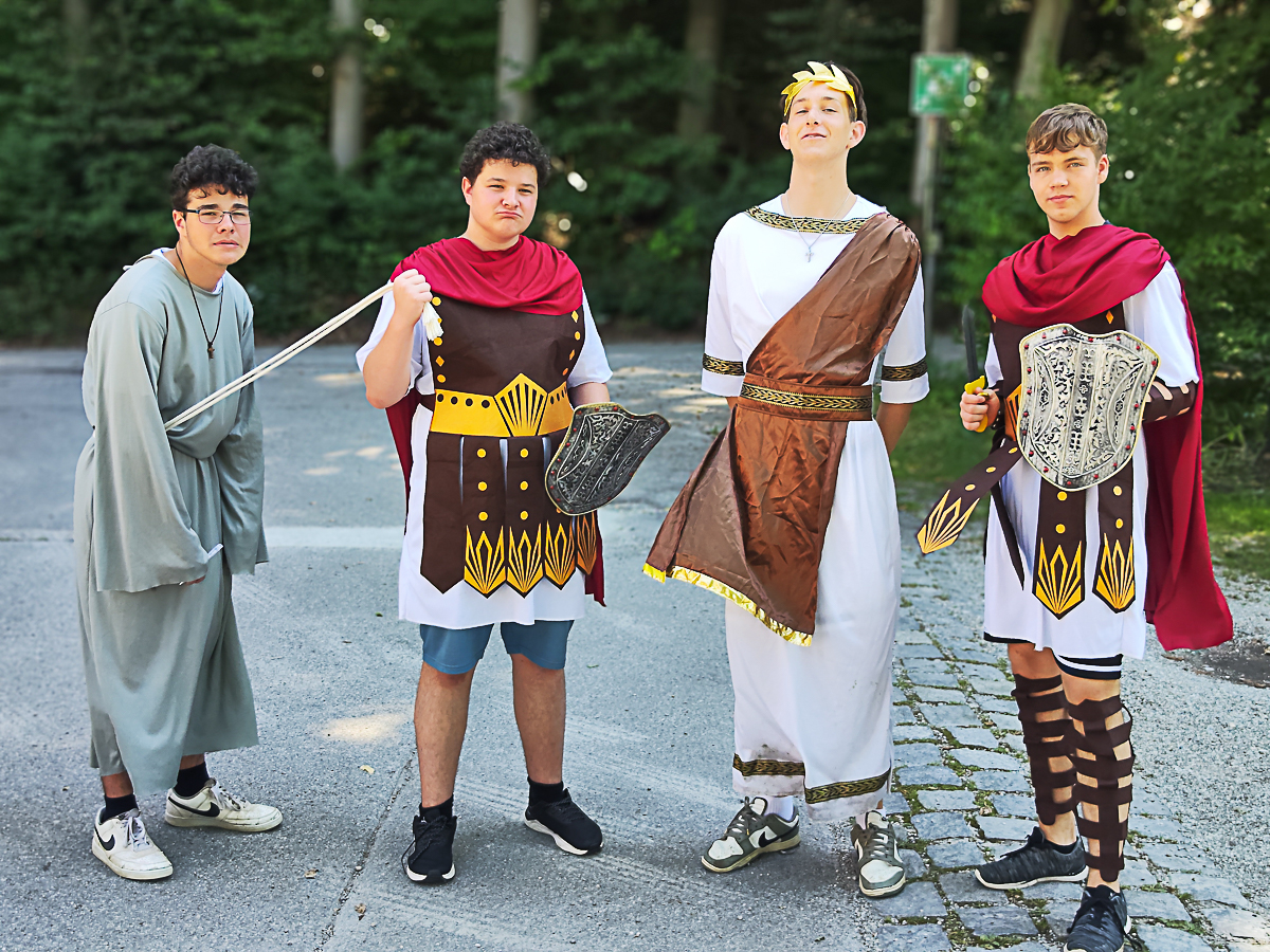 Um diese Haltung ganz praktisch zu üben, gehören auch „Challenges“ zum Programm. In Altötting mussten die Jugendlichen zum Beispiel eine Kaffeebohne im Café „ergattern“ oder Gegenstände hochtraden, um ihre Menschenfurcht zu überwinden. In einer spielerischen „Römer-Challenge“ schlüpften sie in die Rollen von Sklavenhändlern, Senatoren oder Gladiatoren und suchten in der Stadt nach Kutschen, Wein oder freiwilligen Kämpfern. Als „Superhelden“ versuchten sie schließlich, Passanten mit Humor und Mut ins Gespräch zu bringen – etwa indem Superman eine Tür „rettete“, Hulk mit Einkaufstüten posierte oder Spiderman jemandem beim Überqueren der Straße half.