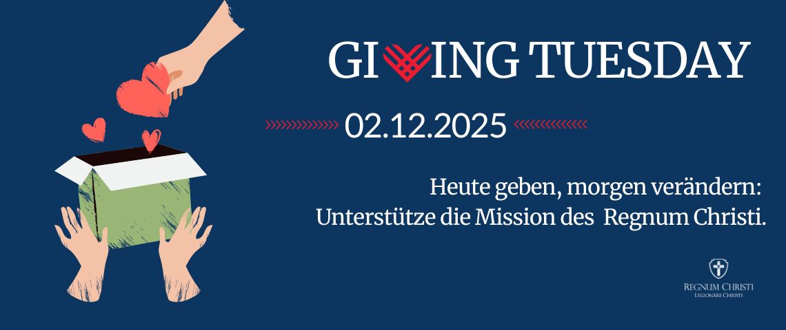Der Giving Tuesday ist eine weltweite Aktion des Gebens – eine Einladung, gemeinsam Gutes zu tun. Als Regnum Christi wollen auch wir Spenden zur Unterstützung unserer Apostolate und all der Menschen sammeln, die sich dort mit großem Engagement ehrenamtlich einsetzen. Ihre Arbeit schenkt Hoffnung, fördert Gemeinschaft und verändert Leben. Mach mit – denn gemeinsam können wir ihr Wirken stärken und Gutes weitertragen!
