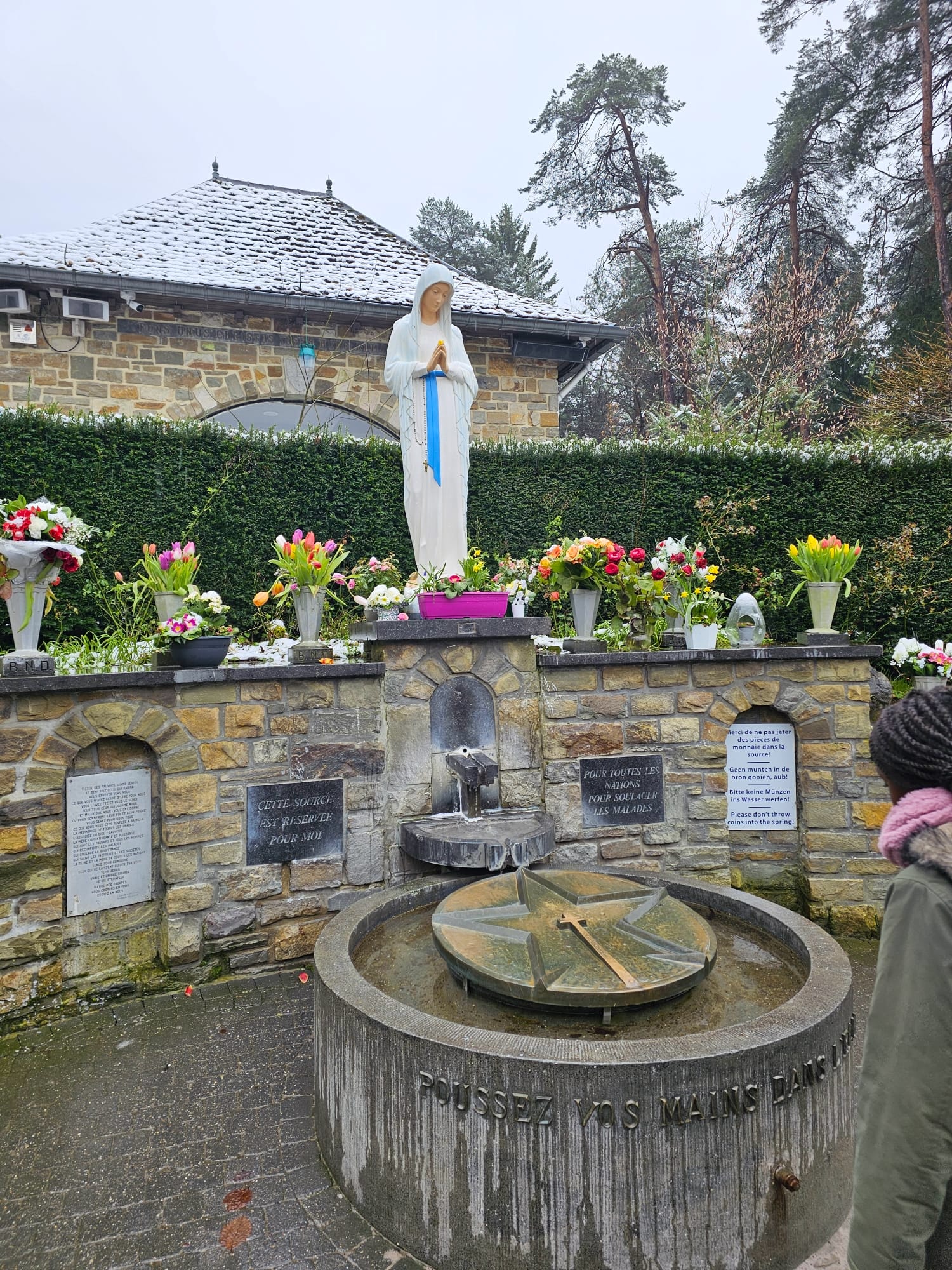 „Mir hat sehr gut gefallen, dass wir gemeinsam als Gruppe in Banneux waren, so konnten wir uns immer wieder miteinander austauschen und das Erlebte miteinander teilen. Für mich ist Banneux ein mystischer, geisterfüllter Ort. Marias Gegenwart und ihr Wirken in unserem Leben ist an verschiedenen Orten spürbar – egal ob in den verschiedenen Kapellen, der Quelle oder in dem Wäldchen. So viele Menschen haben auf den unzähligen Gedenktafeln sich bei Maria für ihre Hilfe bedankt, das ist wirklich beeindruckend! Besonders schön fand ich auch unser gemeinsames Rosenkranzgebet und die Heilige Messe, die wir in unserer Gruppe miteinander gefeiert haben. Ich bin sehr dankbar für diese wunderbare Wallfahrt nach Banneux und werde auf jeden Fall wiederkommen. Mein Mann und Freunde von uns möchten dann auch gerne mitfahren. Danke für den schönen Tag!“
